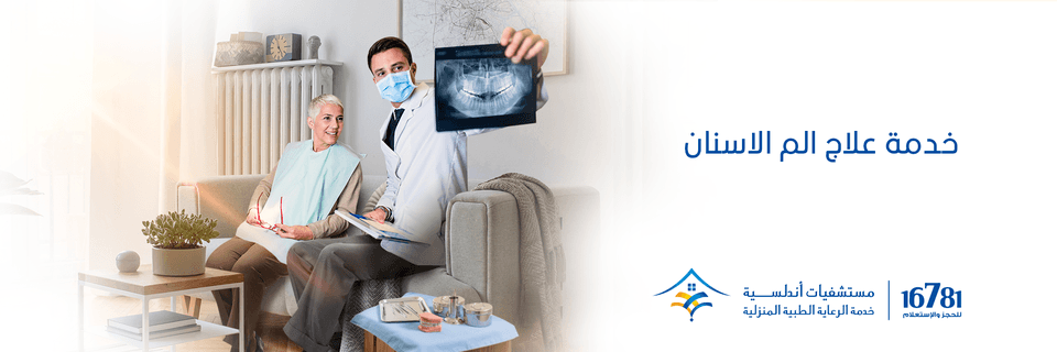 خليك في البيت بس بلاش تعرض سنانك للخطر، دلوقتي تقدر تعالج سنانك من البيت مع برنامج الرعاية المنزلية اللي هايجيبلك أفضل أطباء الأسنان في مستشفيات أندلسية لحد عندك من غير انتظار ولا مشاوير